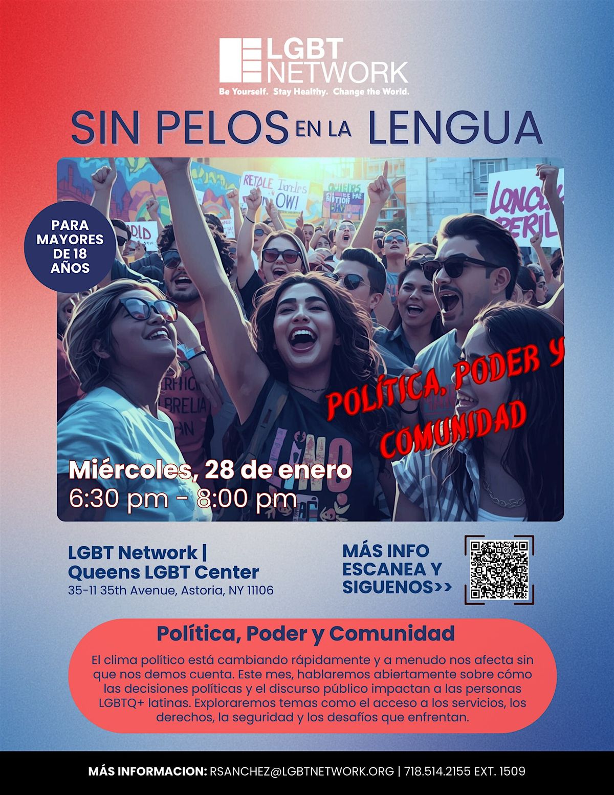 The political climate is changing rapidly, and it often affects us without us even realizing it. This month, we'll be talking openly and directly about how new laws, political decisions, and public conversations impact LGBTQ+ Latinx people. We'll explore topics such as access to services, rights, safety, and the challenges our community faces right now. The goal is to better understand what's happening, clarify doubts, and share practical tools to protect and support one another. Come and participate in a safe space where you can connect with other LGBTQ+ Latinx people from our community, share experiences, and strengthen your voice and knowledge during these times. Here, we speak without filters, with respect, and with the intention of building community power. Facilitated in Spanish.
