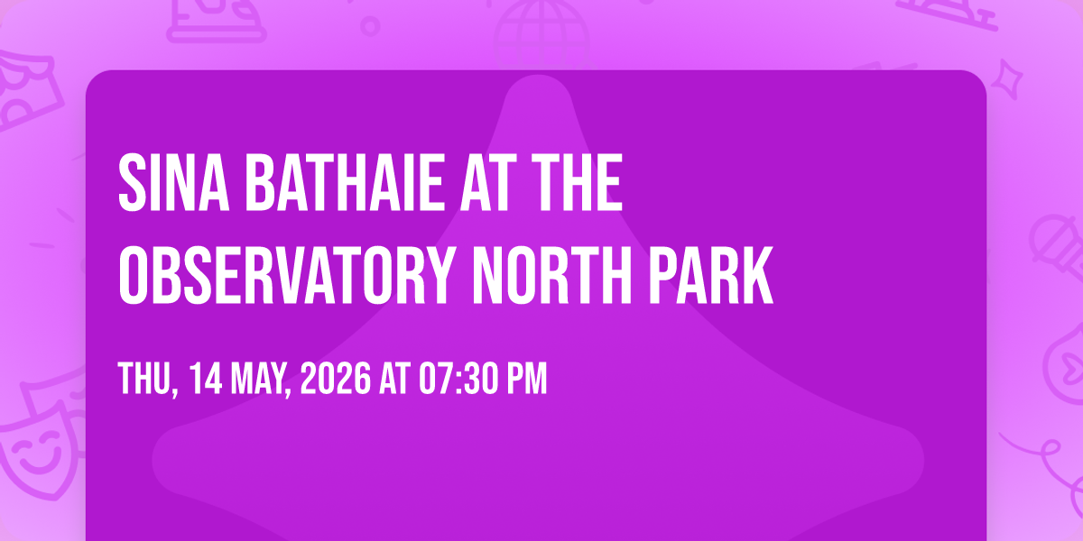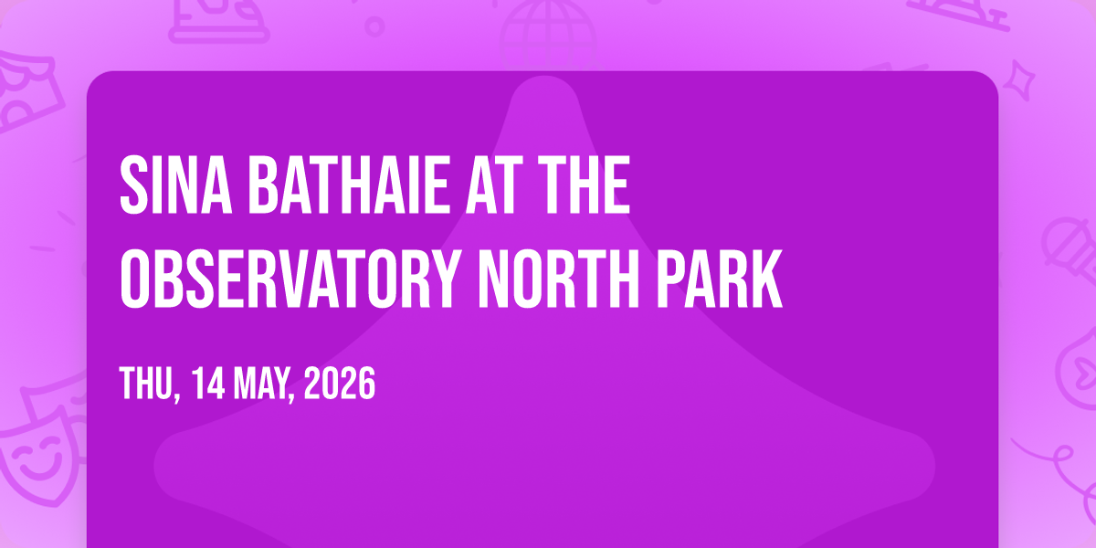 🎉 Welcome to Sina Bathaie at The Observatory North Park, where dreams come alive and possibilities are endless! 🏛️ Join us at The Observatory North Park in the heart of San Diego, CA for an event that defies expectations. 📅 On May 14th, 2026 at 07:30 PM, be part of something truly extraordinary as we bring together innovation, entertainment, and pure magic. ✨ Every aspect has been carefully designed to ensure an unforgettable experience for all our guests. Whether you're seeking adventure, inspiration, or simply a break from the ordinary, this event promises to deliver beyond your wildest dreams. 🎊 Prepare for a journey into the extraordinary!