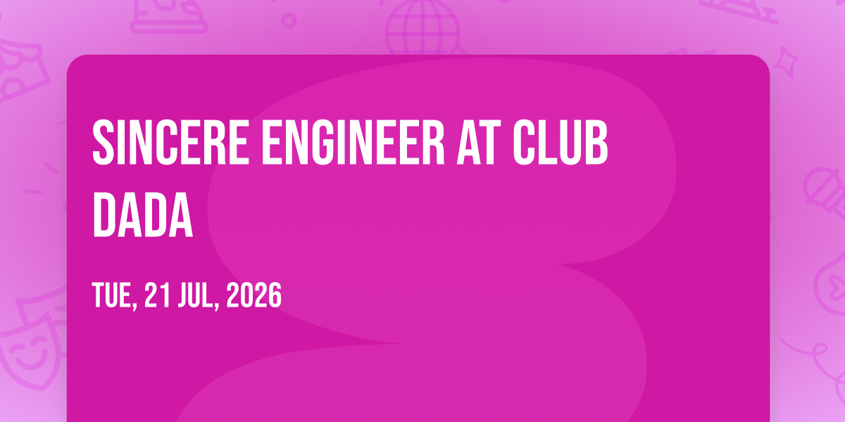 🌟 Journey into wonder at Sincere Engineer at Club Dada, where extraordinary experiences await around every corner! 🏛️ Set against the backdrop of Club Dada in dynamic Dallas, TX, this event promises to exceed all expectations. 📅 Join us on July 21st, 2026 at 07:30 PM for a celebration that combines innovation, entertainment, and community spirit in perfect harmony. ✨ There will be an atmosphere where memories are made and stories come alive, ensuring every guest experiences something truly remarkable. 🎊 This is more than just an event; it's a journey into the extraordinary!