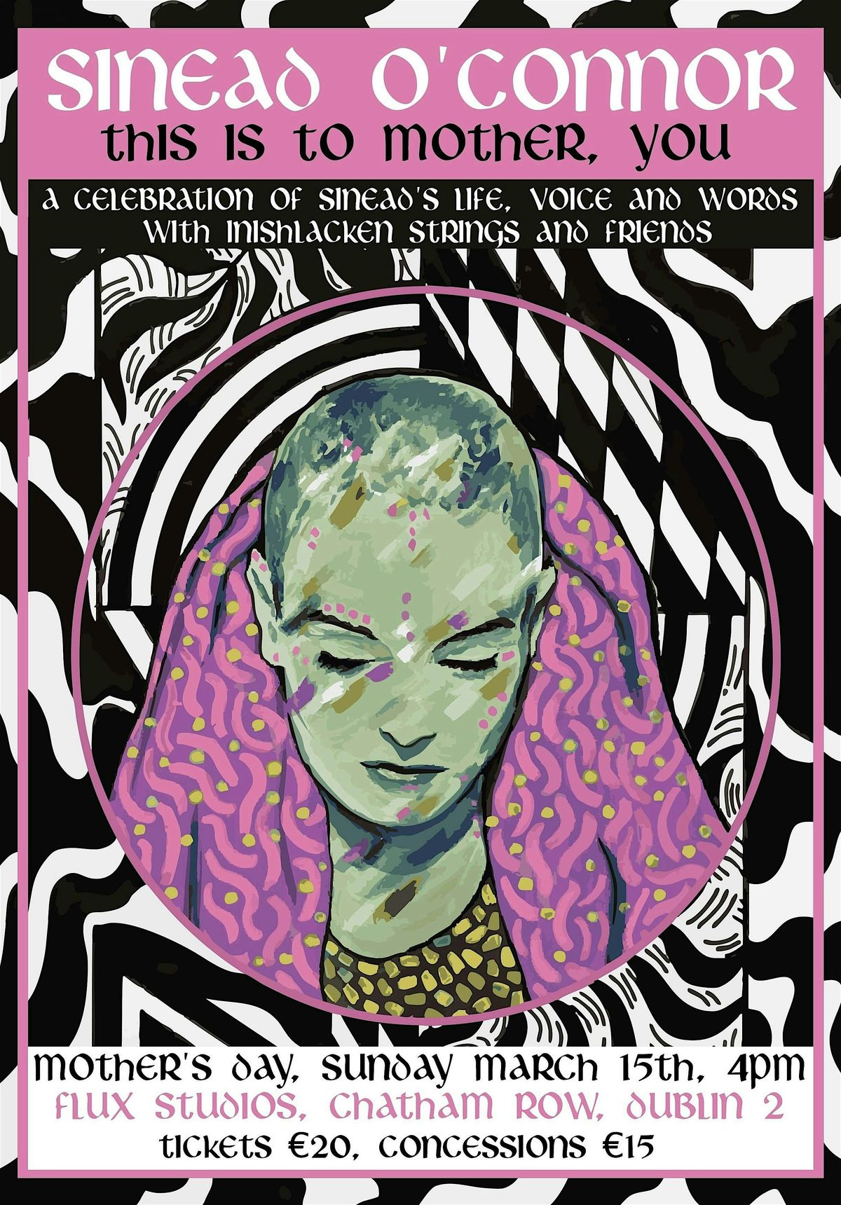 The absence of Sinead O'Connors voice has been felt in recent years. It is the truth to say that she was an unyielding force on Irish society, and her memory lives on through her spirit and her music and lyrics. Through instrumentals, songs, readings, poems, visuals and finally a a deep discussion into the legacy she has left behind and the absence of her voice: Inishlacken Strings, plus several special guests will look to celebrate this incredible soul this mother's day.