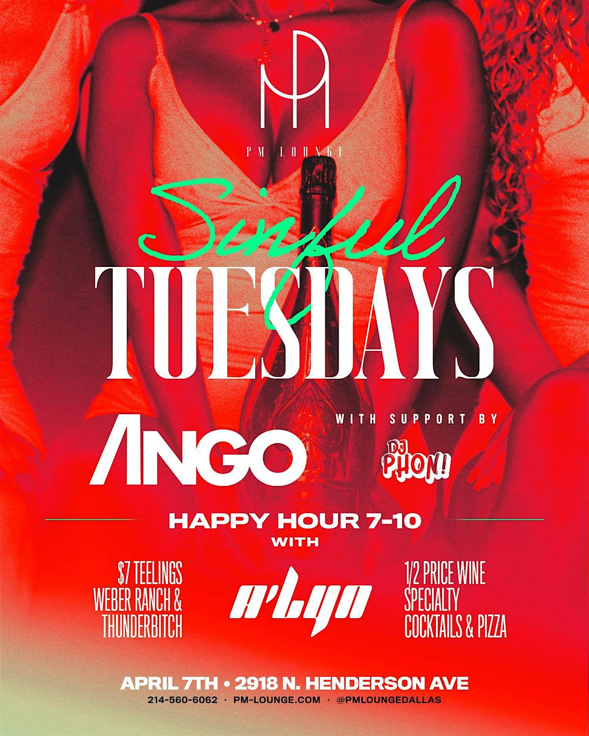 Tuesday nights just got a whole lot darker. Sinful Tuesday brings Ango & DJ Phon! to Henderson Avenue — moody beats, bold energy, and a sound made for the kind of night you won't forget.