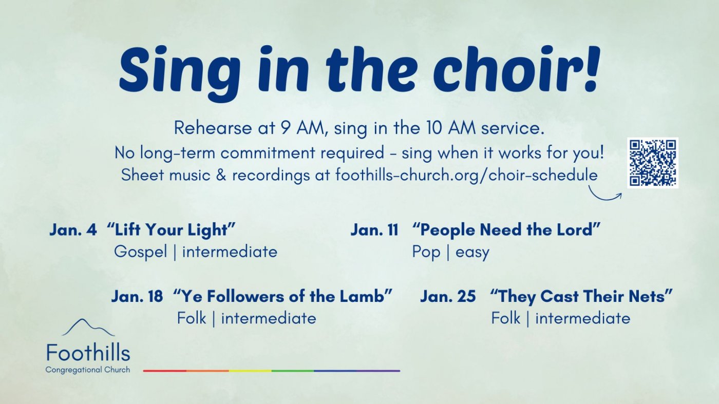Folk | Intermediate: Fair music-reading skills would help you learn this in our single rehearsal, especially if you've looked at the resources on our website https://www.foothills-church.org/choir-schedule