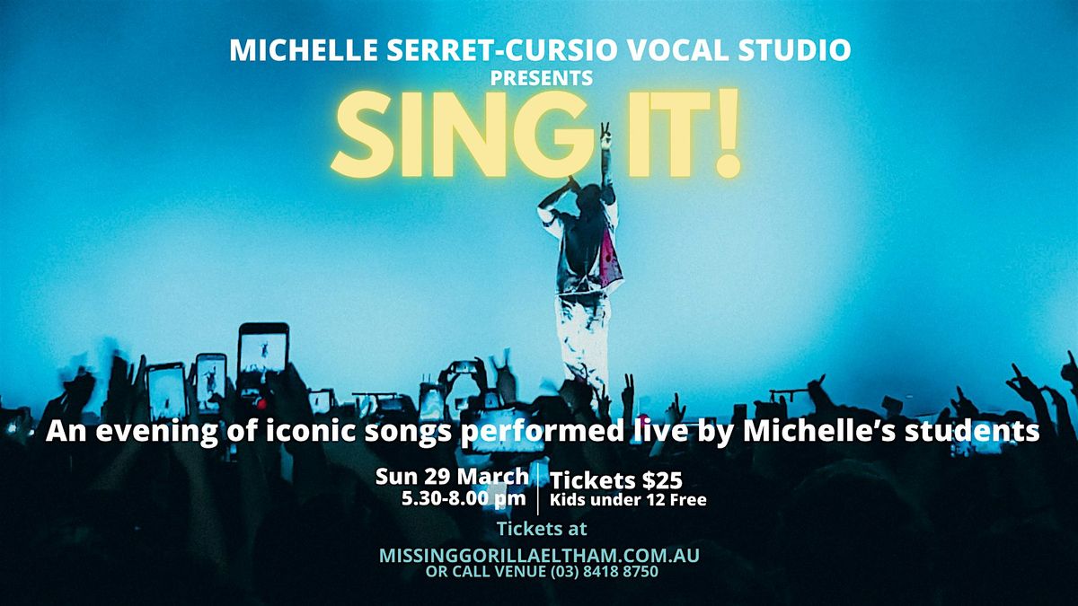Hosted by vocal coach Michelle Serret-Cursio, Sing It! is a joyful celebration of music and local talent you won’t want to miss.About this Event