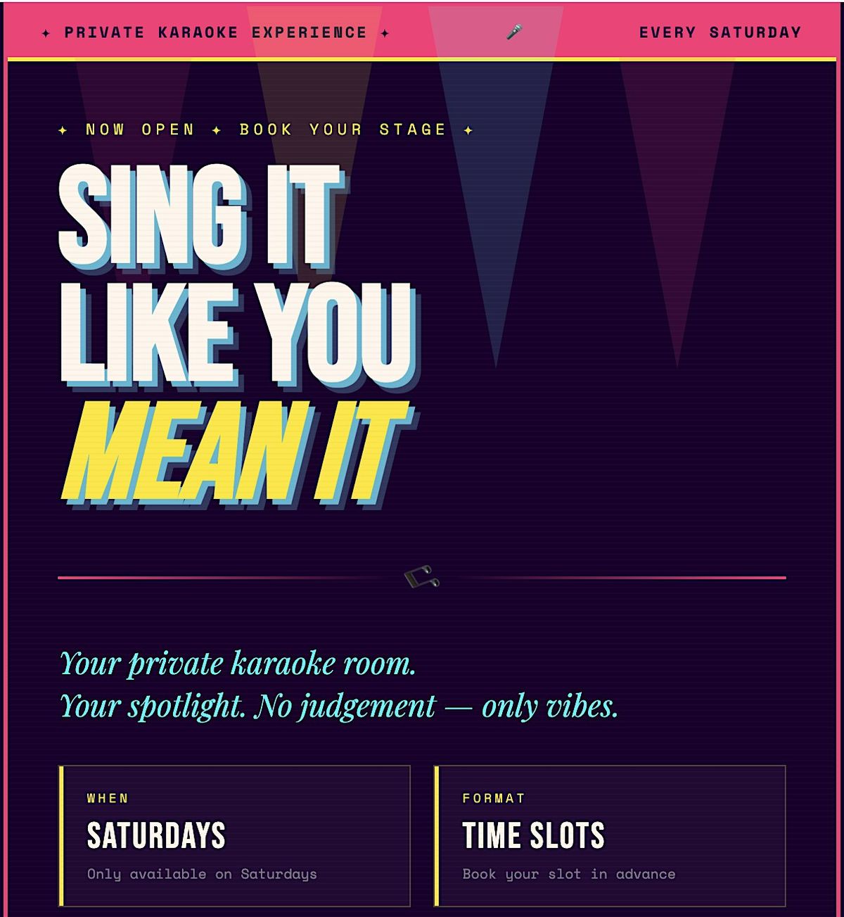 - 2 hours of uninterrupted private karaoke fun