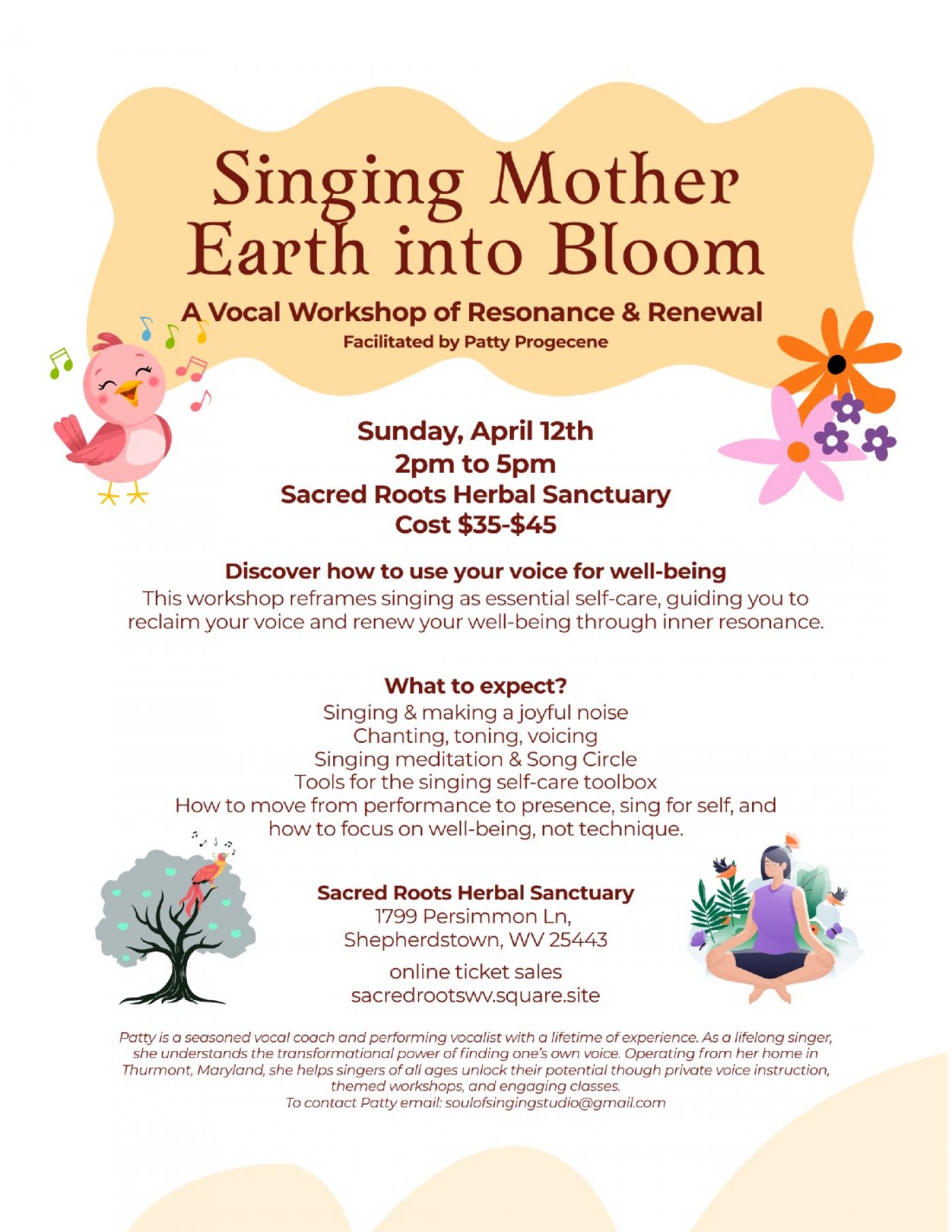 Meet the facilitator Patty Progecene: Patty is a seasoned vocal coach and performing vocalist with a lifetime experience. As a lifelong singer she understands the transformational power of finding one's own voice. Operating from her home in Thurmont Maryland she helps singers of all ages unlock their potential through private voice instruction, themed workshops, and engaging classes.