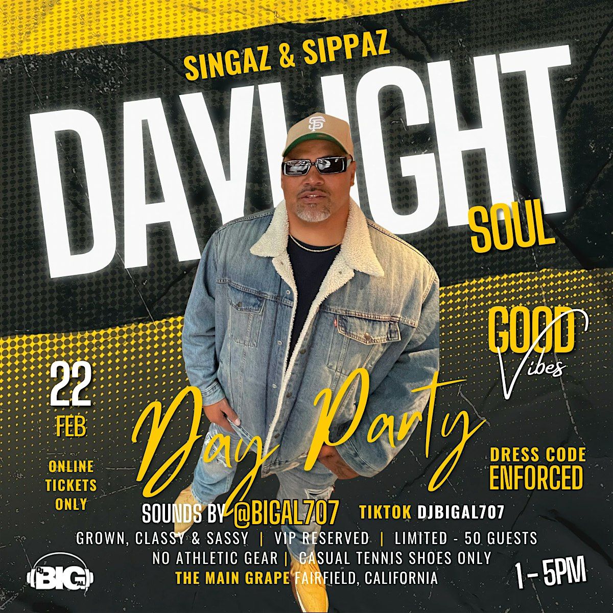 Get ready for an awesome in-person vibe at Singaz & Sippaz: Daylight Soul! Limited to ONLY 50 tickets available. Join us as we soak up soulful R&B classics and good company in the daylight. Itβs all about great music, tasty sips, and chill times. Donβt miss out on this fun-filled day where the beats and the drinks come together perfectly. Grab your friends, bring your energy, and let's make some memories!