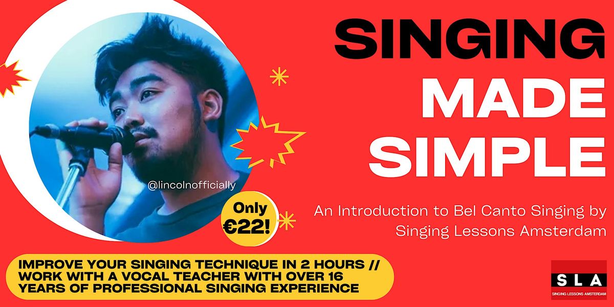 Introducing Singing Made Simple, by —a two hour workshop designed to improve singing stability, strength, note accuracy, and confidence through proper vocal technique. Get a taster of a private vocal lesson, with guidance from beginning to end by a vocal coach with over 16 years of professional music industry experience.