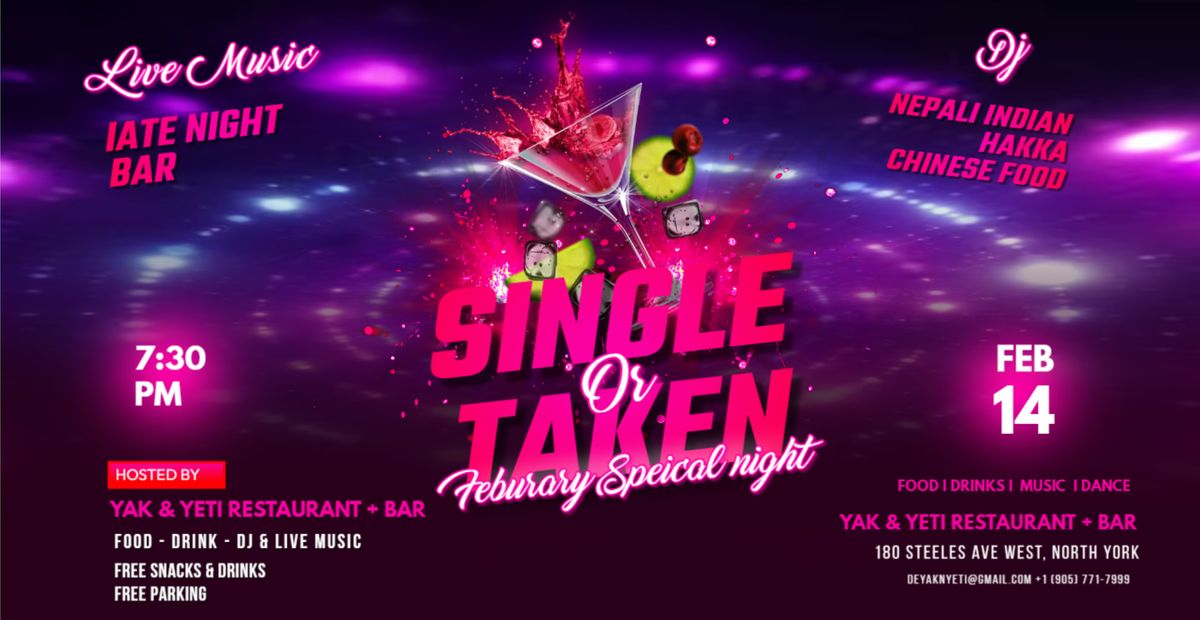Join us this February for a high-energy party night at Yak & Yeti Restaurant + Bar. Whether you’re single, taken, or just here for the vibes, this event is all about music, drinks, food, and a great crowd.