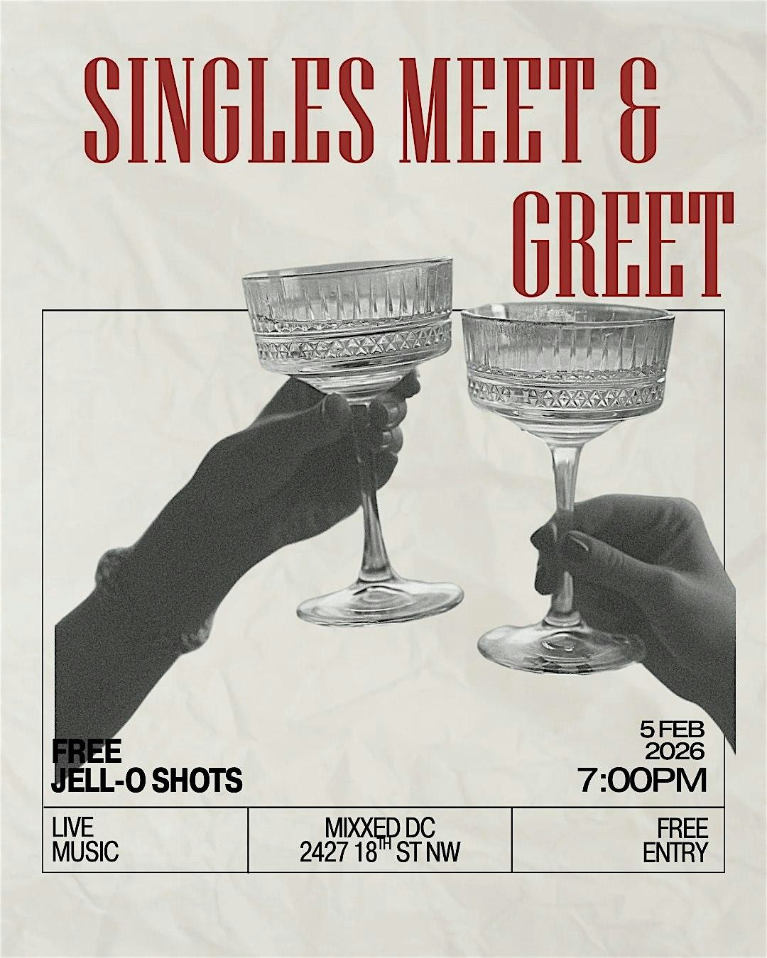 Get ready to mingle, laugh, and maybe find a spark at our Singles Meet & Greet event - who knows, you might just meet your match!