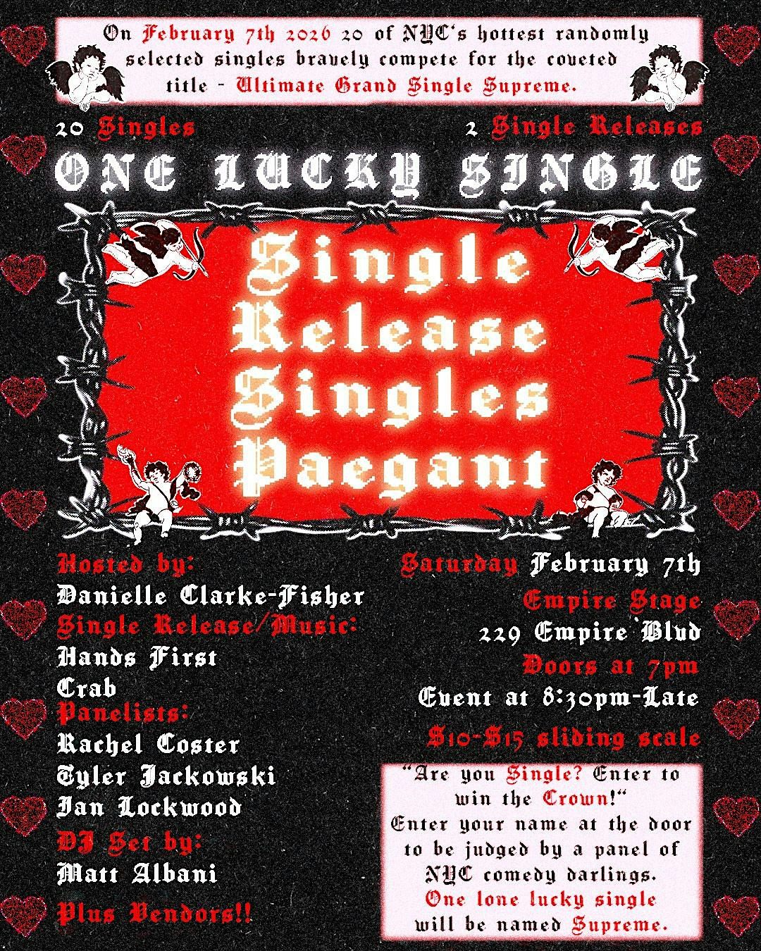On saturday 2/7 claim your rightful throne at the SINGLE RELEASE SINGLES PAGEANT at Empire Stage