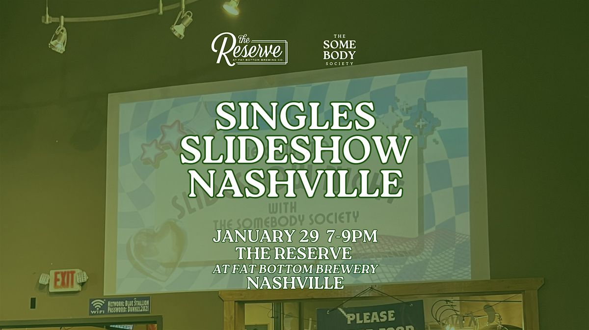 The Somebody Society is hosting a Singles slideshow event at The Reserve at Fat Bottom Brewery on January 29th from 7pm-9pm. Come and present yourself or a friend or just enjoy learning about your potential match!