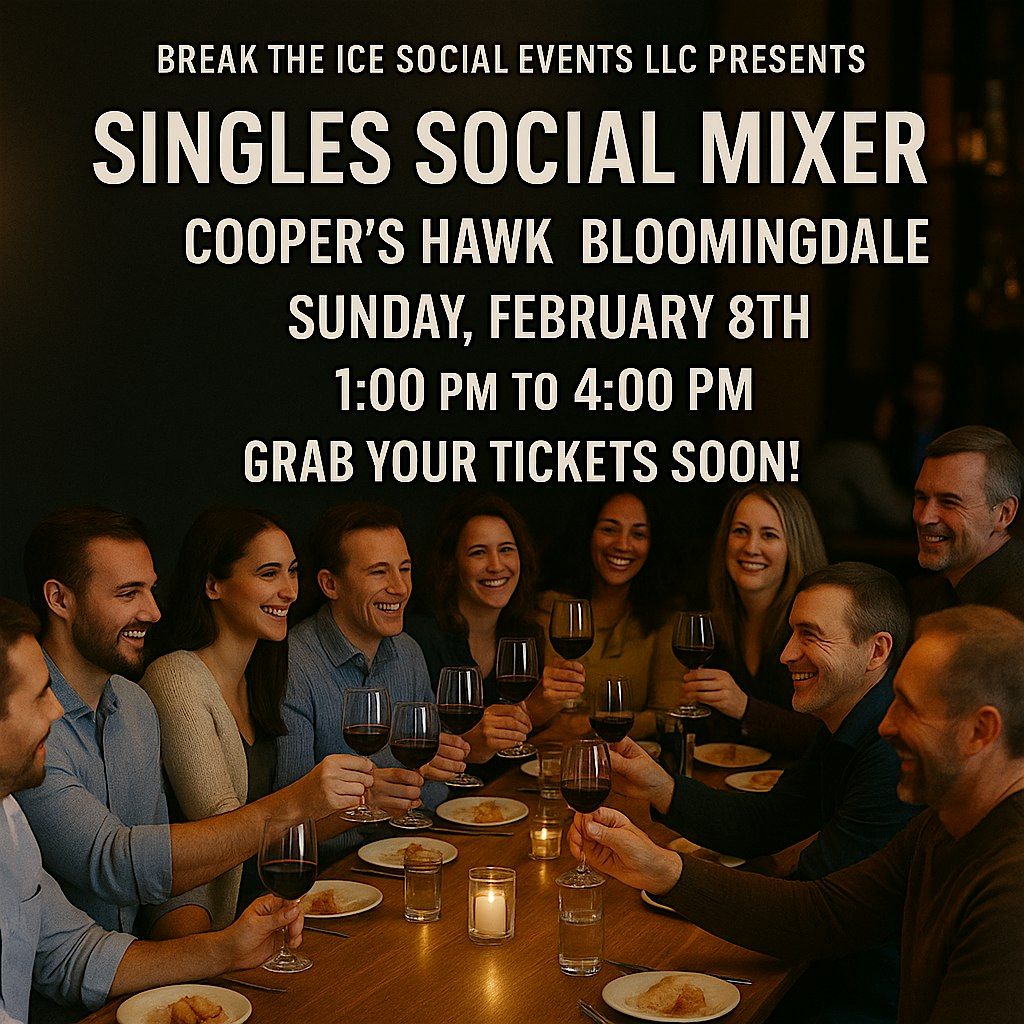 Welcome to the Singles Social Mixer happening at Cooper's Hawk Winery & Restaurant in Bloomingdale, IL! Get ready to mingle and meet new people on February 8, 2026 at 1:00 PM (Central Time). It's going to be a fun-filled event where you can connect with other singles in a relaxed and friendly atmosphere. Don't miss out on this opportunity to make new friends and maybe even find a special someone. Join us for an exciting afternoon of socializing and good vibes!