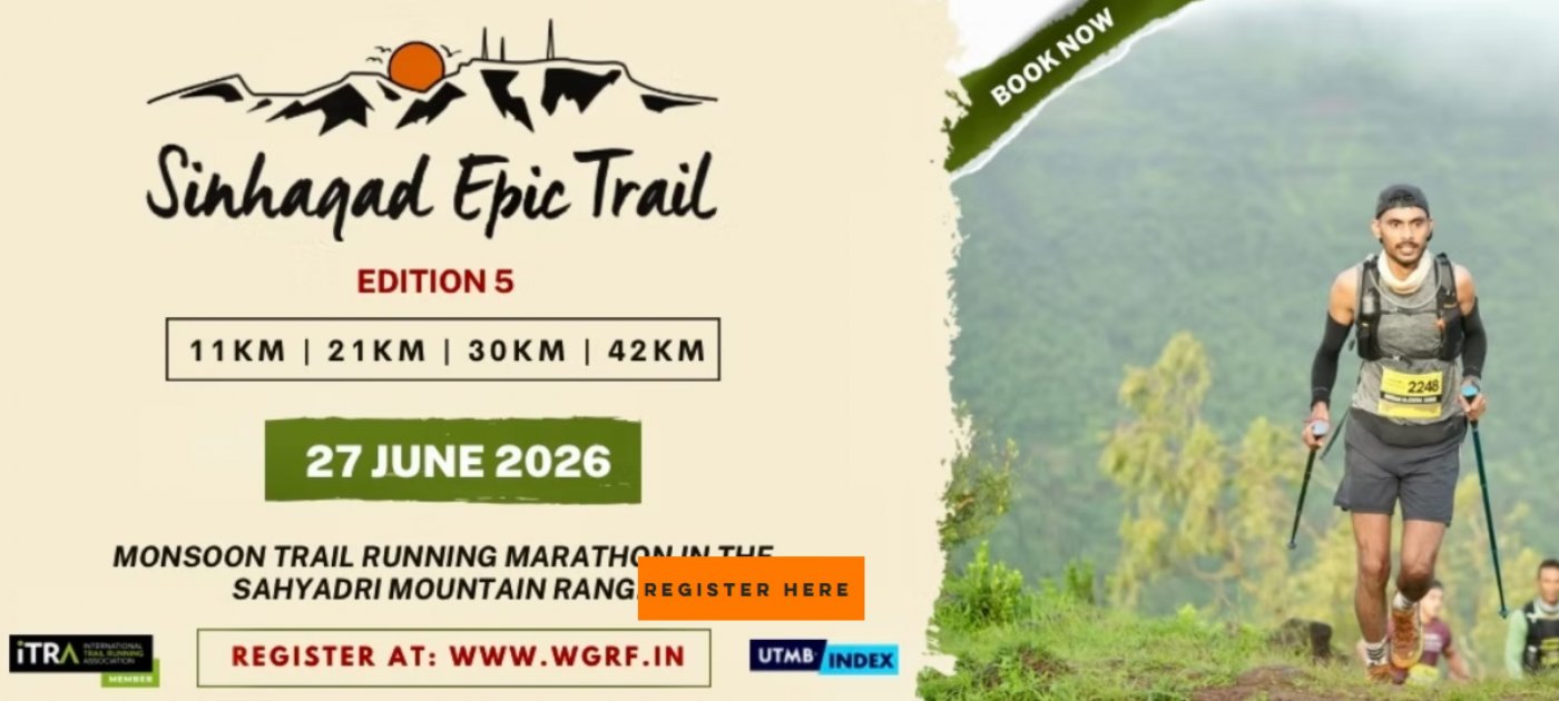 Sinhagad Epic Trail is an action packed monsoon trail race taking place on 27th June 2026 at the foothills of Sinhagad Fort, Pune, India. In this race you will run on the most beautiful route set in the Ghera of Sinhagad fort, which is known as Lions Den of the Sahyadri Mountain Ranges.