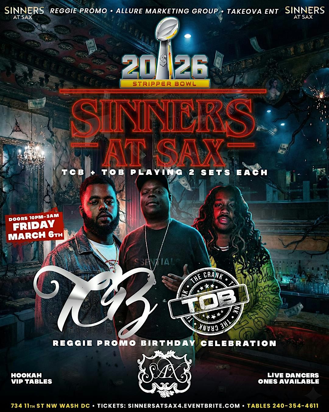 For More Information Follow @sinnersatsax @reggie_promo @alluremarketingdc