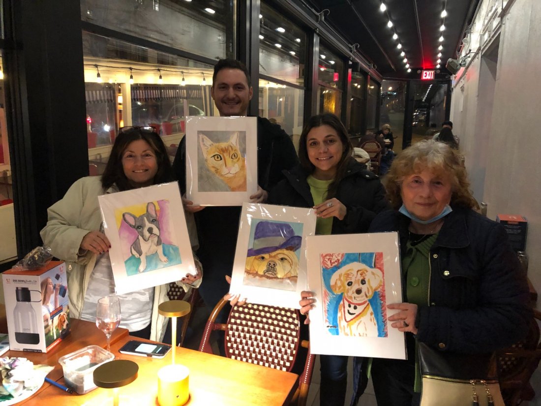 What better way to enjoy an evening than going to a dog friendly restaurant and a painting a portrait with your dog ? It’s a chance to get out and enjoy good food and drinks with your pup. Relax with your pup at Barking Dog restaurant on the Upper East Side in Manhattan New York City and Paint your Pet Portrait with personal Artist one on one instruction.