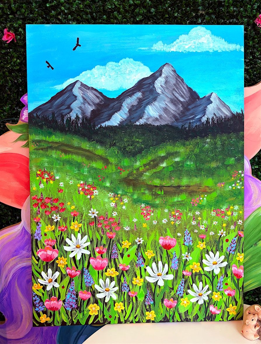 In this beginner-friendly workshop, you’ll be guided step-by-step to paint a charming meadow scene filled with blooming flowers and gentle mountain views. No experience is needed — just come ready to unwind, explore your creativity, and enjoy the process.