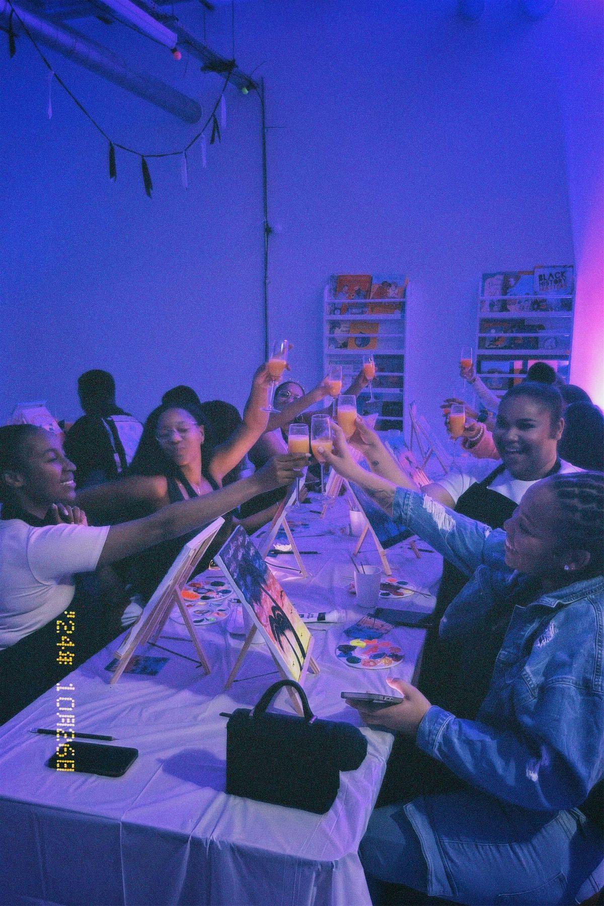 Whether you are coming with friends, on a date, celebrating a birthday or just looking for something fun to do, this experience is all about laughing, sipping and painting freely in a social, grown atmosphere.🥂
