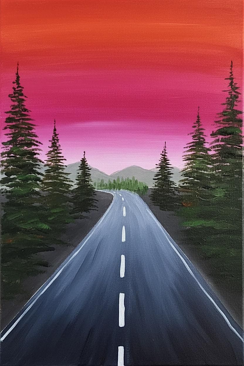 Join us for a calming and creative Sip & Paint evening with LilyWyo.In this beginner-friendly session, you’ll create your own dreamy sunset road landscape step by step.