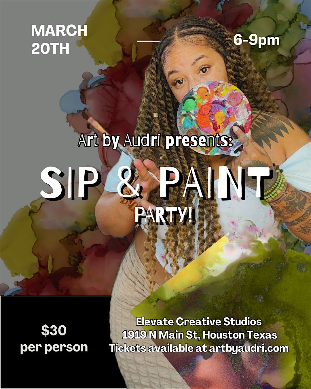Get ready for a creative night out at Elevate Creative Studios in Houston on March 20th from 6–9PM! 🎨✨ Each guest will choose their own unique canvas designed by Audri herself—no two paintings will be the same. Enjoy complimentary drinks, smooth R&B, lots of laughs, and nothing but good vibes while you create your own masterpiece. Grab your friends and come paint, sip, and vibe with us!