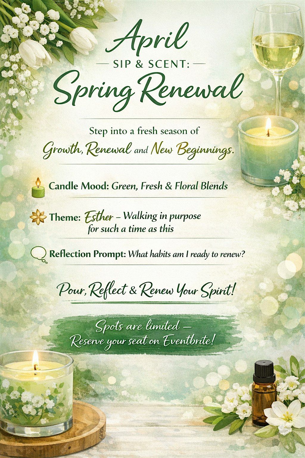 Guests will enjoy light refreshments while creating a custom candle using scents that represent renewal, clarity, and intention.