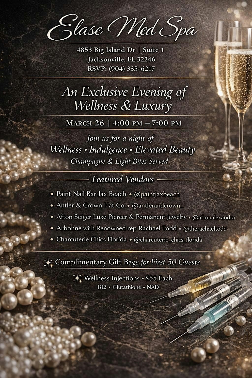 Come join us for an awesome in-person Sip and Shop event! Enjoy light bites while browsing unique finds from local vendors. It's the perfect way to unwind, meet local businesses, and have a blast with friends. FREE Gift Bags for our first 50 guests. Wellness Shots available - Don’t miss out!