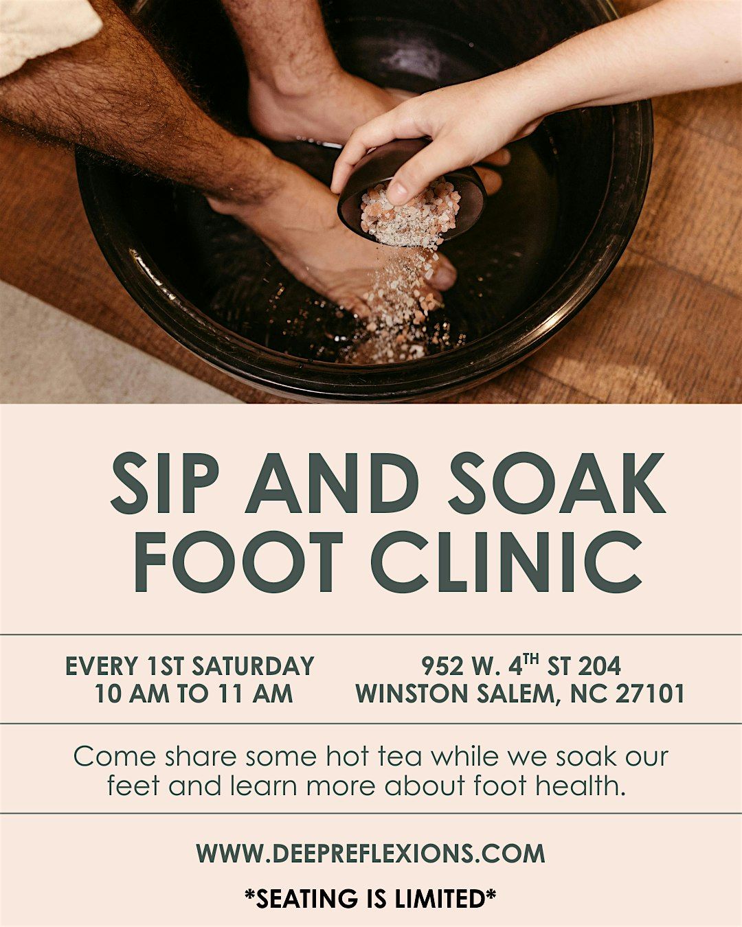 Come give your feet some TLC with a warm foot soak while sip some hot tea and learn about foot health.