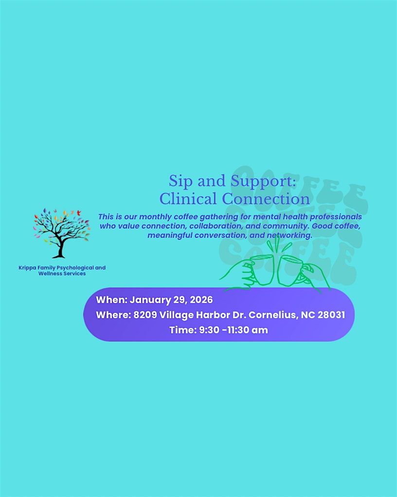 Krippa Family Psychological and Wellness Services will be hosting Sip and Support network event at the office offering Clinical Connection.