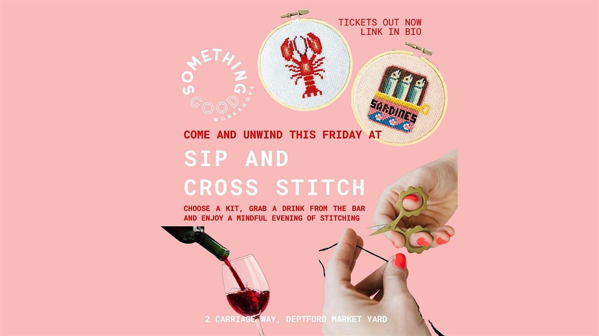Ease into your weekend with Sip & Cross Stitch, a relaxing Friday night workshop at Something Good Workshops in Deptford Market Yard.