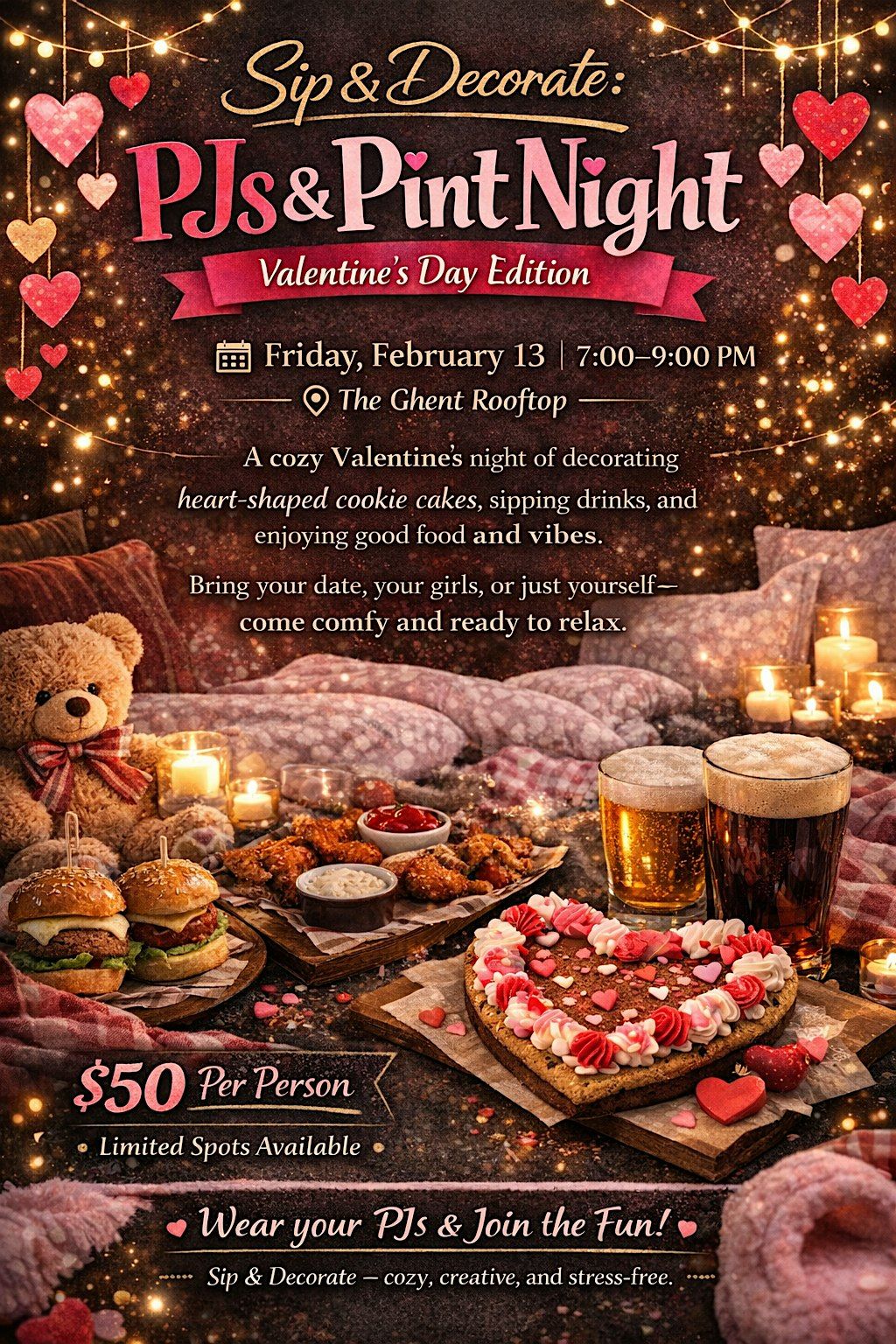 Celebrate Valentine’s Day with a laid-back night of decorating, sipping, and vibes at Sip & Decorate: PJs & Pint Night.