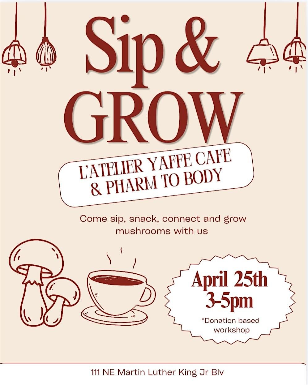Sip, snack & grow! Join Pharm to Body & L’atelier Yaffe Café to learn mushroom cultivation and take home your own grow kit.