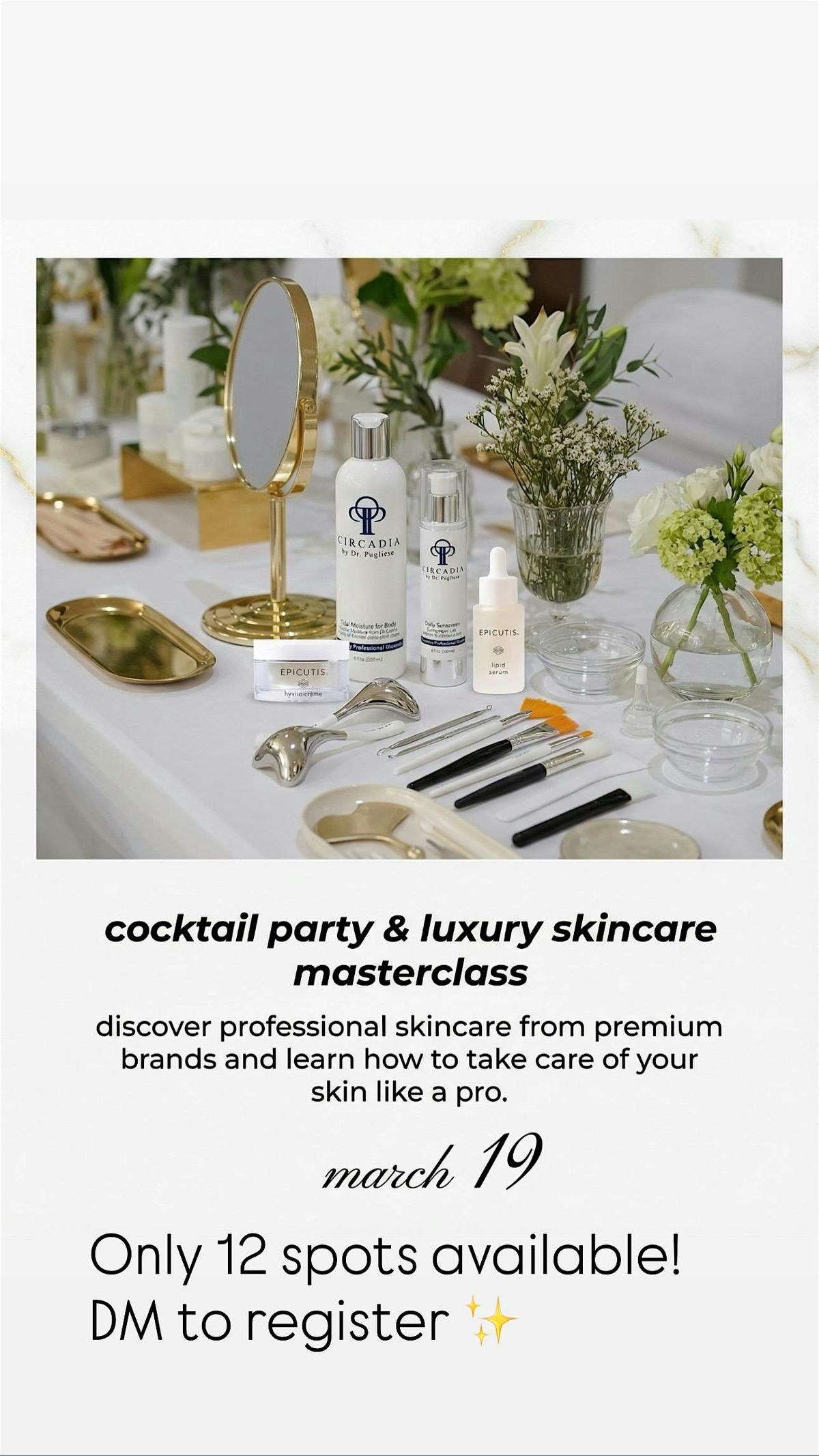 Join us for a fun and relaxed in-person masterclass where we'll talk about how to properly care for your skin, the right order to apply products, and how to choose what works best for you. Grab a drink, and learn the secrets behind a great skincare routine from the pros. Perfect for all skin types and anyone curious about boosting their natural glow at home. Don’t miss this chance to sip, learn, and glow together!