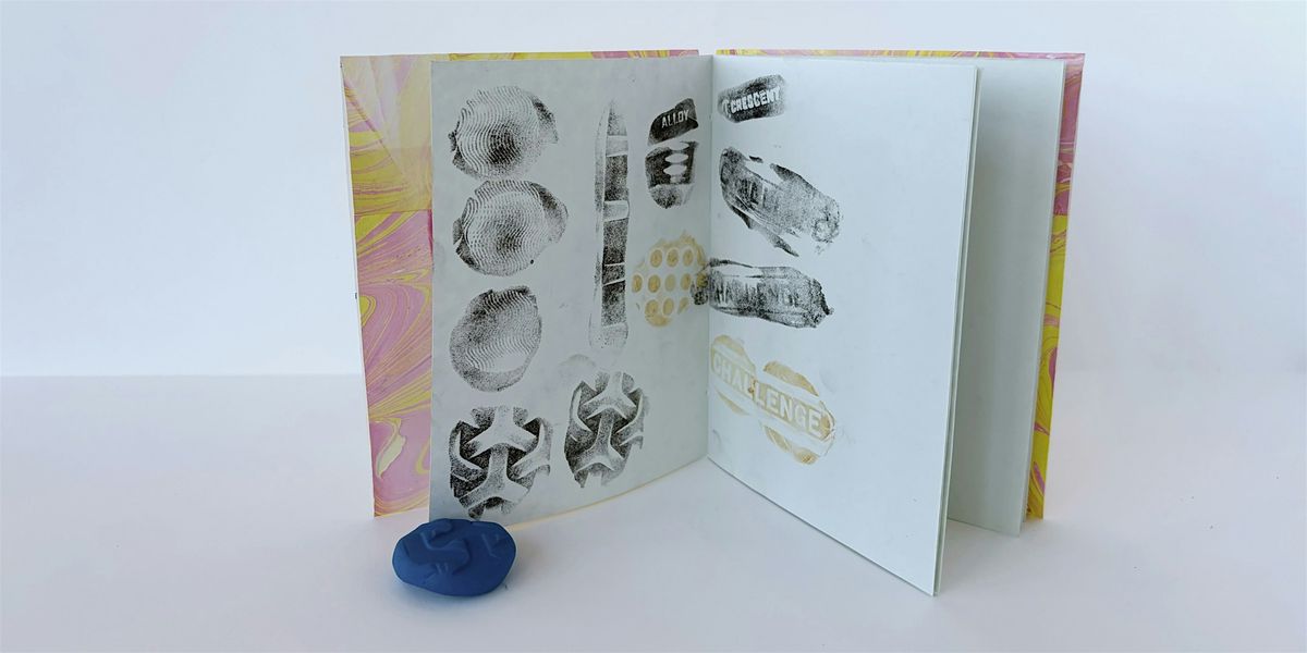 This month we'll be making a simple hand-bound journal with a secret compartment (or two). We'll also be searching the studio for textures and making prints using clay and ink.