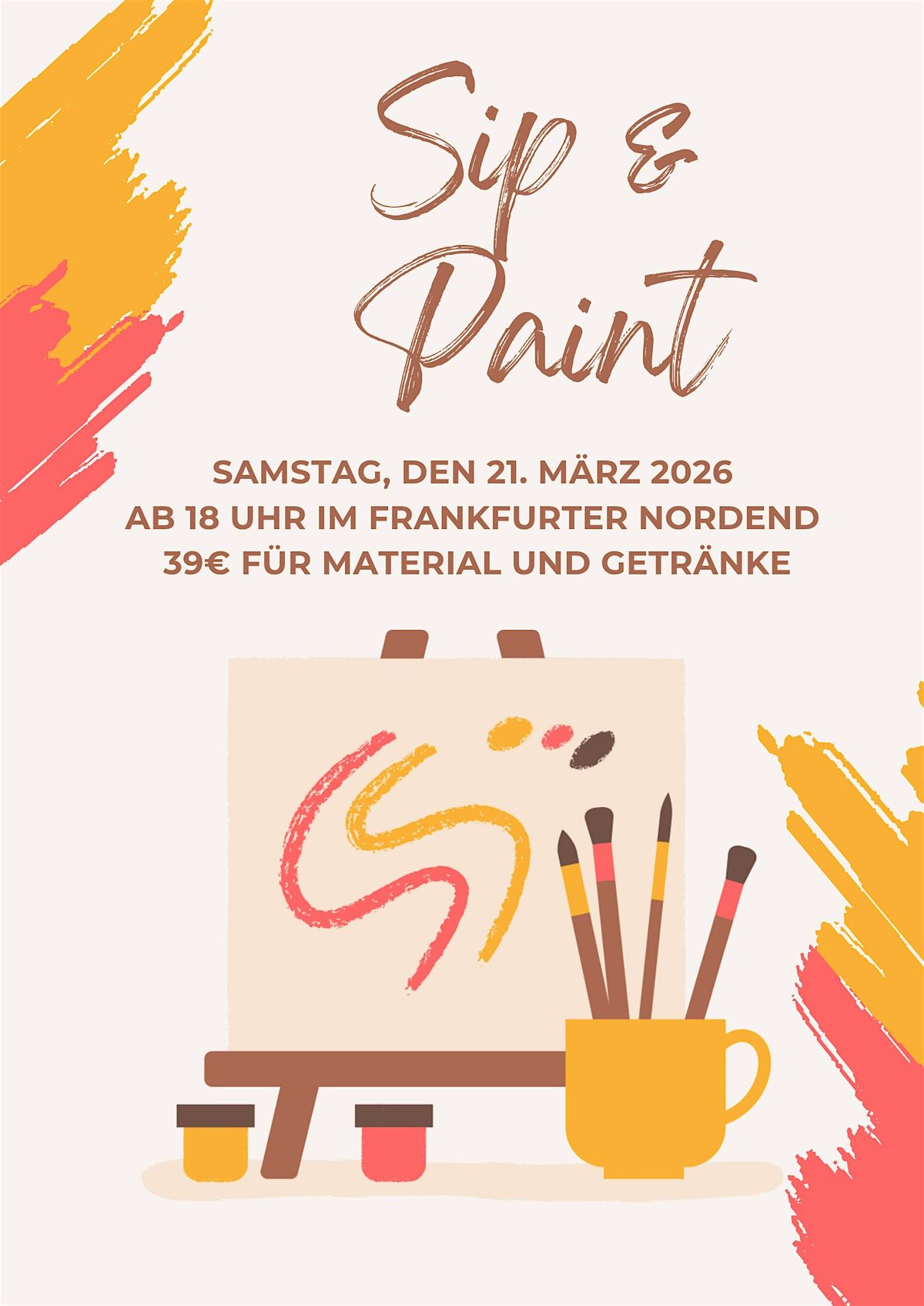 Hast du Lust auf einen kreativen Abend in entspannter Atmosphäre?Dann komm zu meinem Sip & Paint Event am Samstag, den 21. März um 18 Uhr im Frankfurter Nordend!Für 39 € sind alle Materialien sowie Getränke inklusive – du musst dich um nichts kümmern, außer gute Laune mitzubringen. 🤗