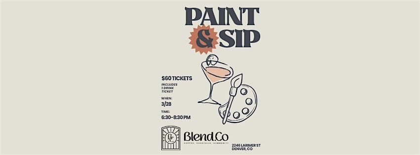 Looking for a chill night out? Join us at Blend.Co for Sip & Paint! It's the perfect chance to unwind, enjoy your favorite drink, and get creative with some painting fun. Whether you're a pro or a total newbie, this in-person event is all about having a good time and letting your inner artist shine. Grab your friends, relax, and let's make some art! 1 Drink ticket included in ticket, additional food and beverage available for purchase.