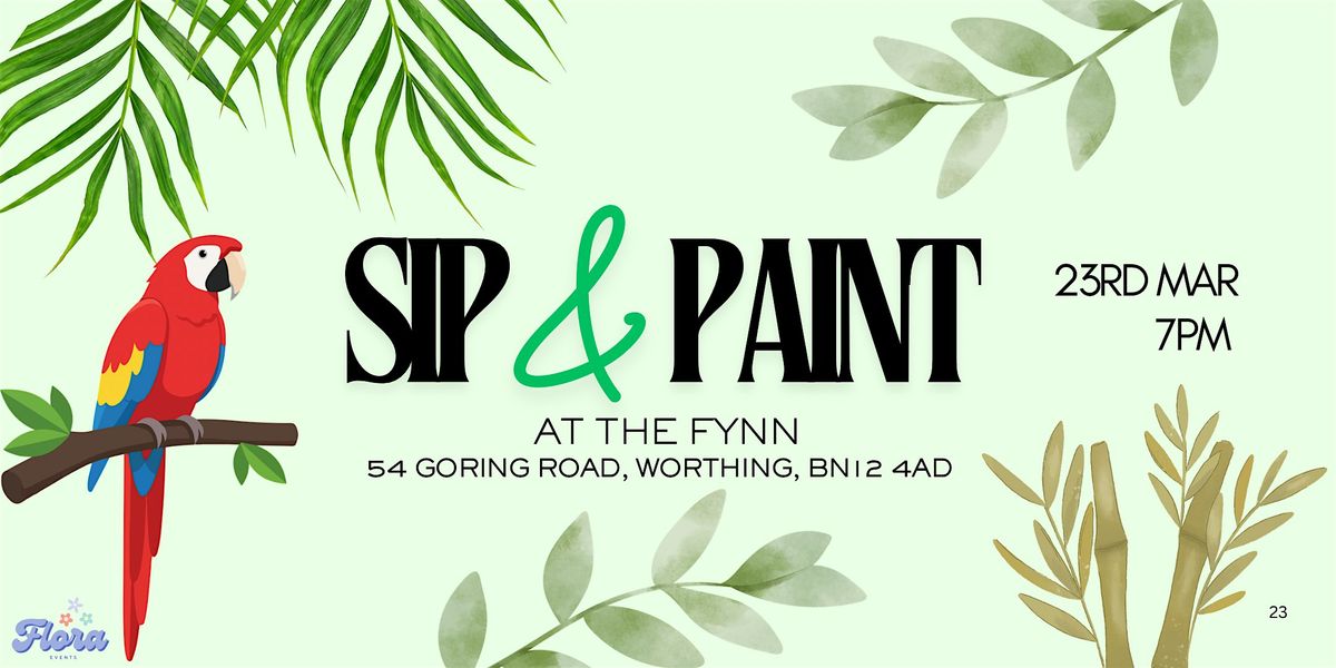 Join us on Monday 23rd March at The Fynn for a vibrant, tropical-themed Sip & Paint where we’ll be creating a striking red macaw on canvas.