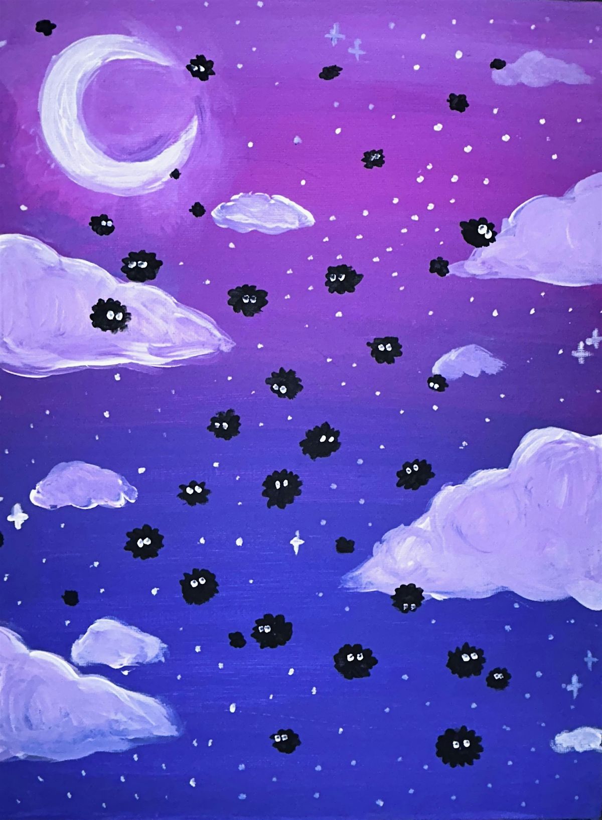 Unwind in a cozy, social atmosphere as you’re guided step-by-step in creating a whimsical nighttime scene featuring glowing skies and playful spirit-like soot sprites. All painting supplies are provided. Drinks /food are not included in the ticket price but are available for purchase during the event!