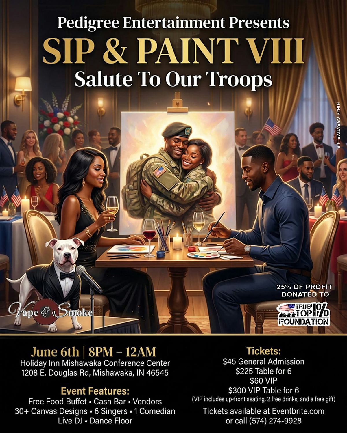 Fun night of Music (6 Singers), 1 Comic, Live DJ, Dance Floor, Food (Free Buffet), Cash Bar, Painting (30 + Canvas Designs To Choose From)!