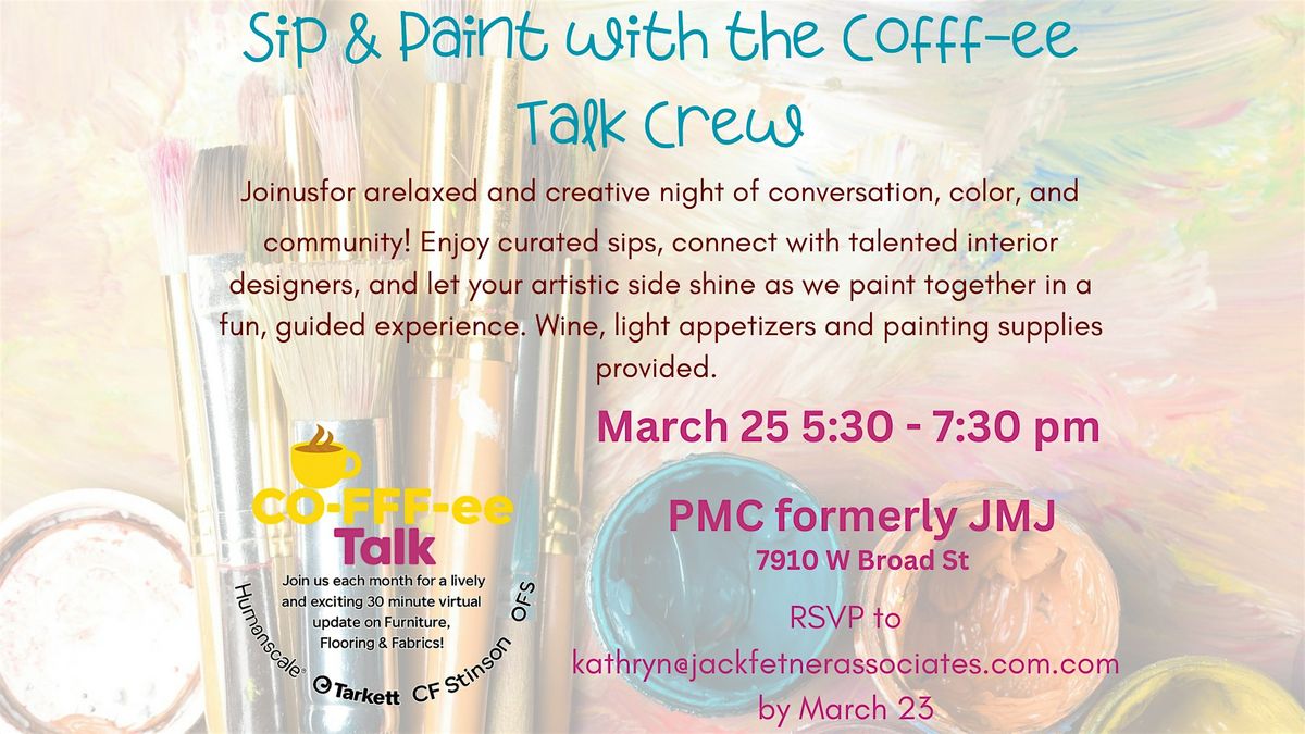 Join us for a relaxed and creative night of conversation, color, and community! Enjoy curated sips, connect with talented interior designers, and let your artistic side shine as we paint together in a fun, guided experience. Wine, light appetizers and painting supplies provided.