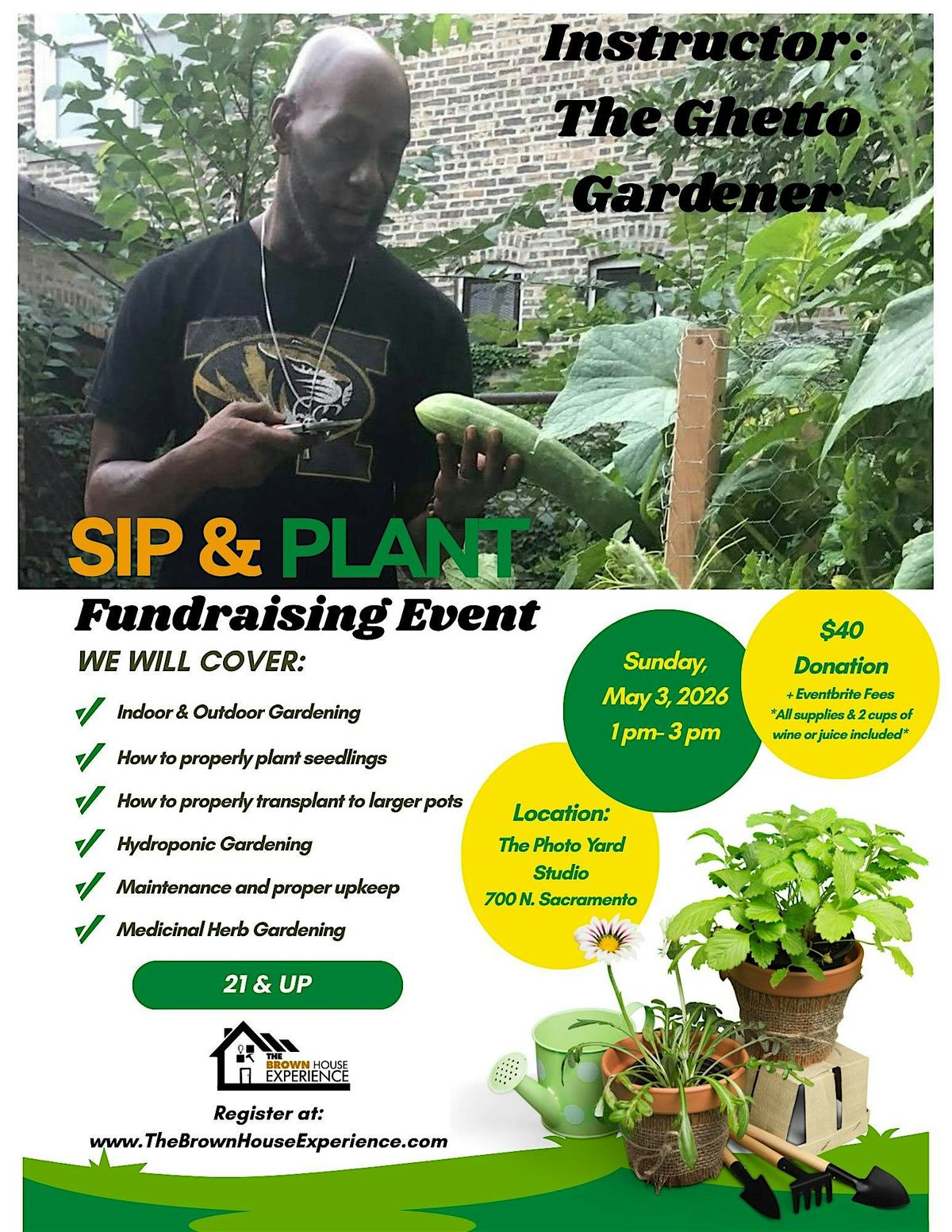 We're pleased to welcome "The Ghetto Gardener" to instruct the class! He is known for his innovative techniques that will help both indoor and outdoor gardens flourish! We will even discuss how to grow medicinal plants right at home!