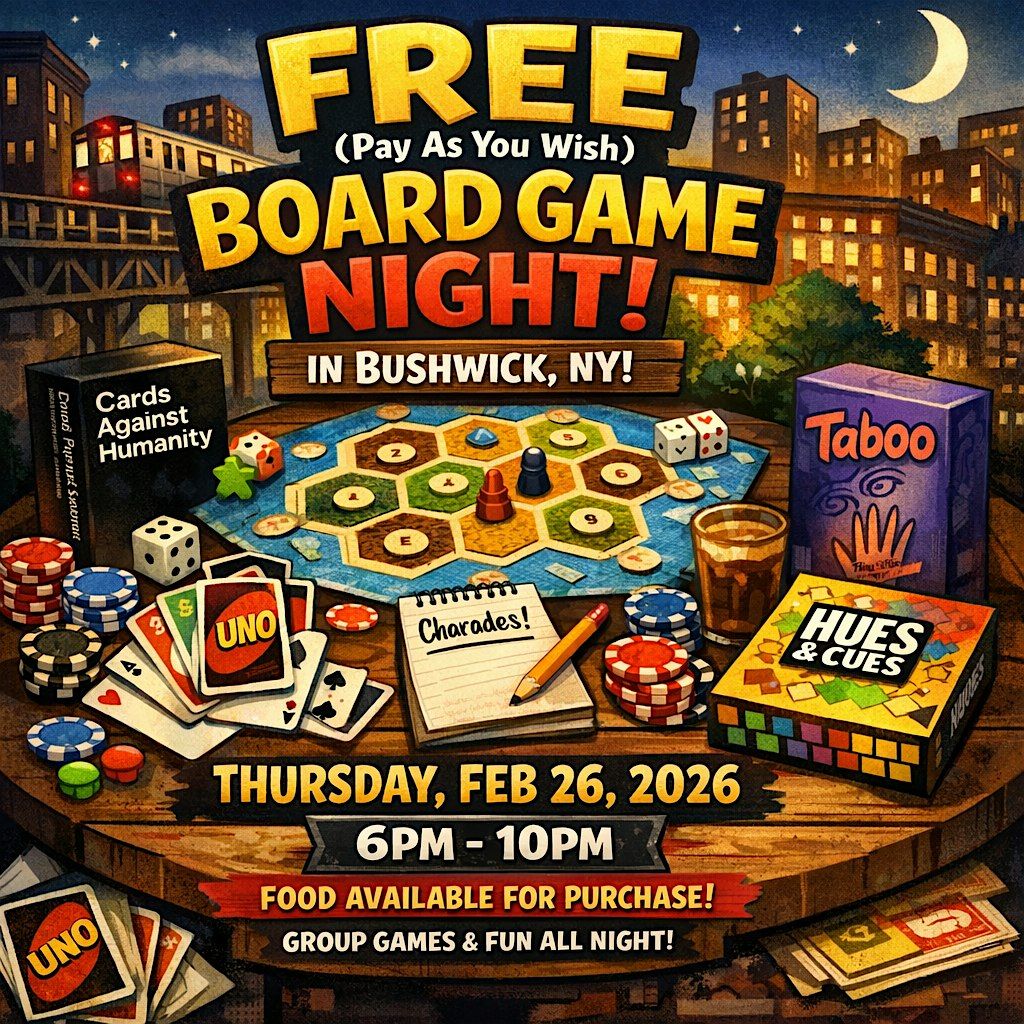 Join us for Sip & Game – Board Game Night in Bushwick, an evening full of laughter, friendly competition, and great energy. Whether you come with friends or arrive solo, this is the perfect space to play, connect, and meet new people.