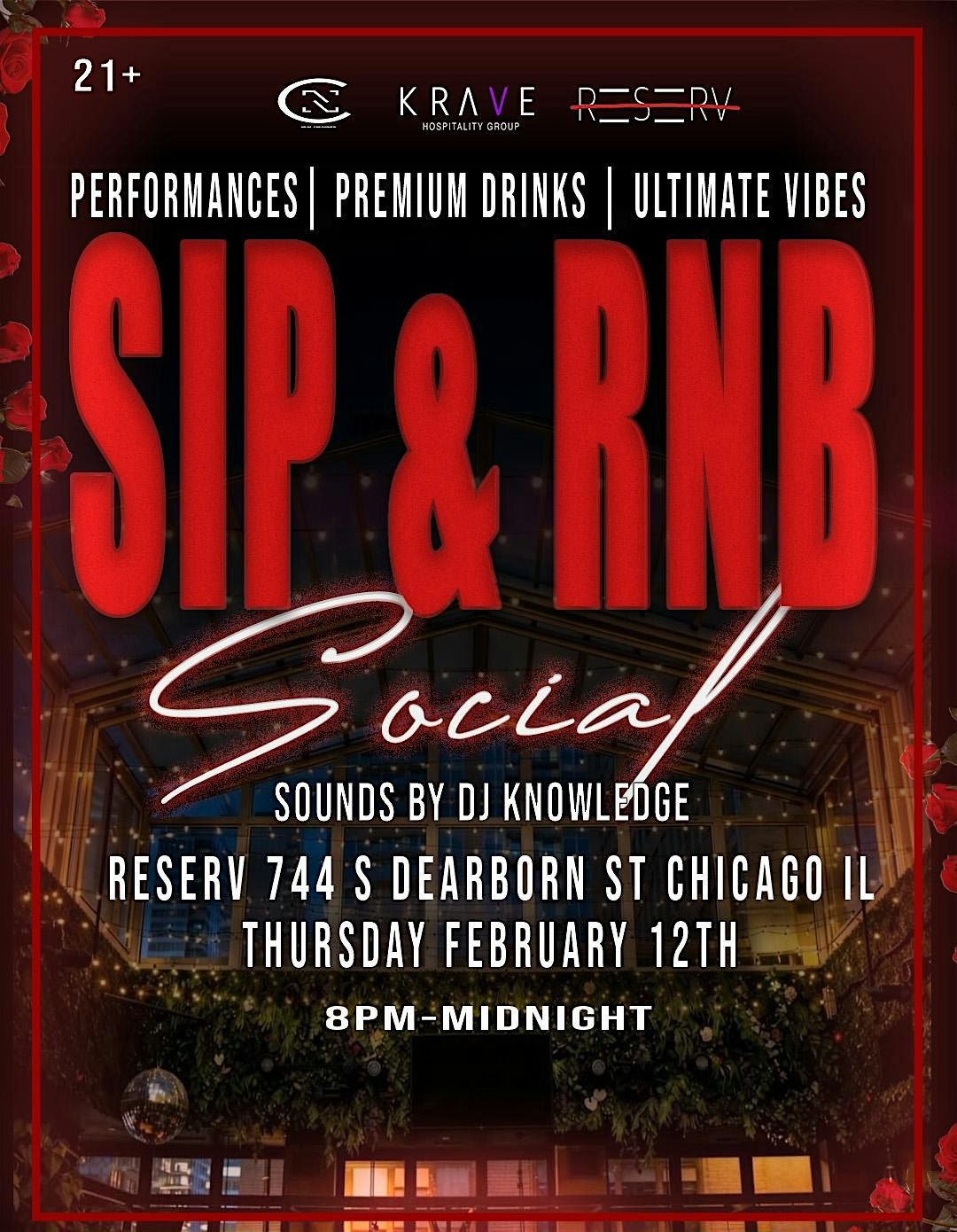 is for the RNB lovers.A combination Live performances by the hour from 9-11, Chicagos top djs will be spinning all night, and premium drinks and food to satisfy all your cravings.