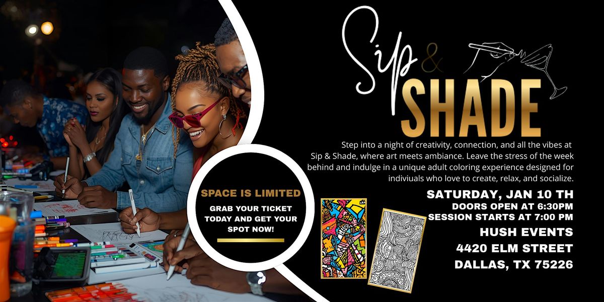 Get ready to unwind and get creative at Sip & Shade – the ultimate event where you can sip on your drink and dive into some cool shading. Whether you're a newbie or a pro, this event is all about having fun, chilling out, and connecting with fellow art lovers. Grab your supplies, your drink of choice, and let's make some magic happen together!