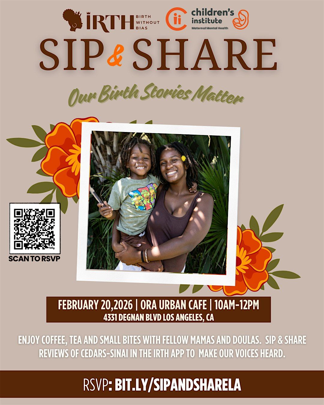 We will have coffee, tea and bites for everyone who joins. We will share Cedars-Sinai reviews on the app. We will recieve information and goodies from Maternal Mental Health Department of The Children's Institute! We believe in uplifting the community voices to create safer birthing outcomes. We hope to see you there! Children are more than welcome to attend too.
