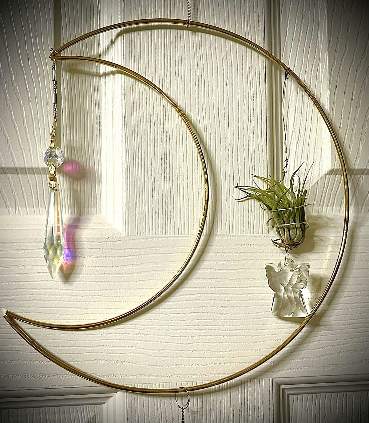 This guided workshop includes everything you need to create a stunning 29" crystal sun catcher featuring a golden moom, air plant, glass angel crystal, teardrop crystal and a variety of sparkling glass crystals to design your own inspirational piece. No expierience needed-just come ready to relax, create, and have fun.