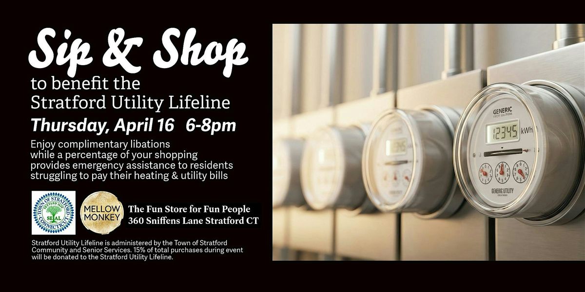 You're invited to Mellow Monkey's Sip & Shop Event to benefit The Stratford Utility Lifeline.