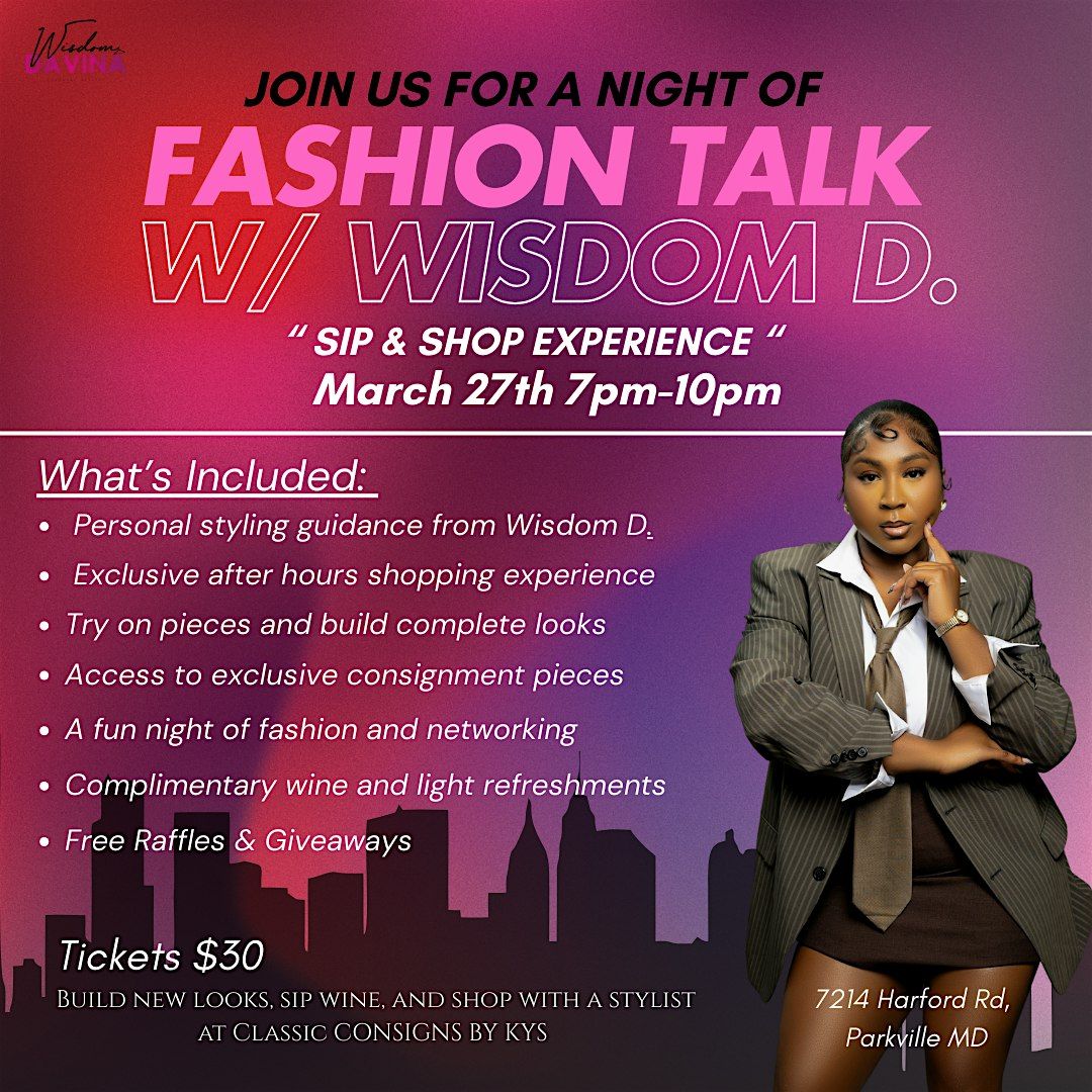 Join stylist Wisdom D. for an exclusive after-hours personal shopping experience at Classic Consignments by K Boutique. Guests will enjoy a private shopping environment while receiving one-on-one styling guidance, outfit suggestions, and tips on how to shop and style consignment pieces like a stylist. Sip wine, enjoy light refreshments, and discover unique fashion finds during this intimate night of style and shopping.