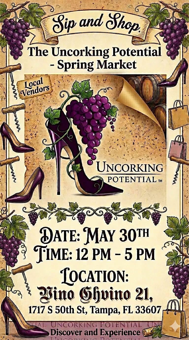 Join us for our Sip & Shop seasonal vendors market Saturday, May 30th 12-5. Enjoy free wine sampling by Vino Ghvino 21and enjoy food selections by Traveling Butterfly Bistro, all while shopping unique products and services from local Tampa area women owned businesses. Free and open to the public.