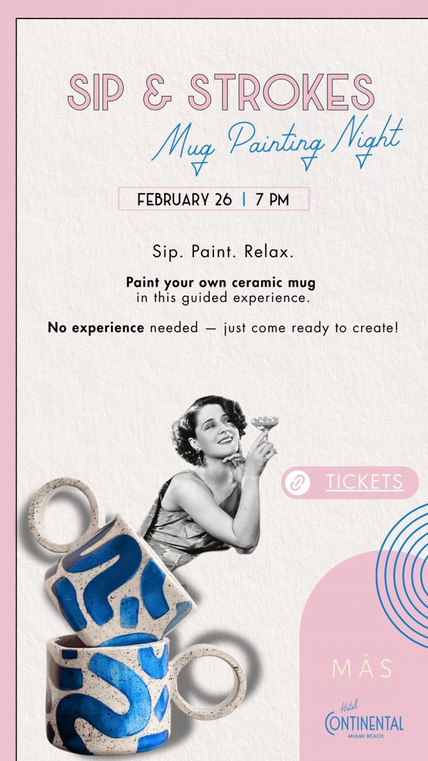 Tickets available for purchase at https://www.eventbrite.com/e/sips-strokes-miami-beach-mug-painting-night-tickets-1983370182607?aff=oddtdtcreator