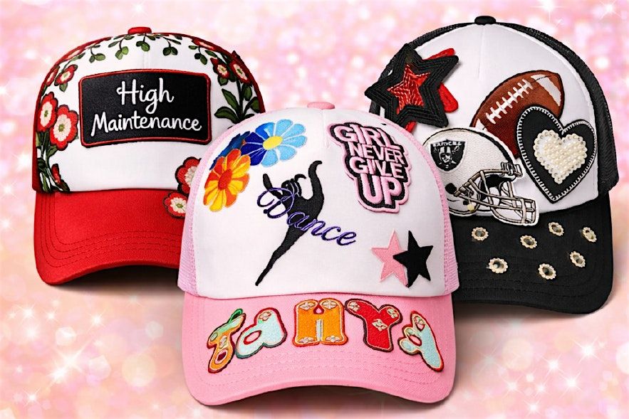 Get ready for a creative, fun, and aesthetic-filled day where YOU design your own custom junk trucker hat using our full bar of patches, jewels, chains, charms, letters, and accessories. No experience needed — just bring your creativity and enjoy the vibes.