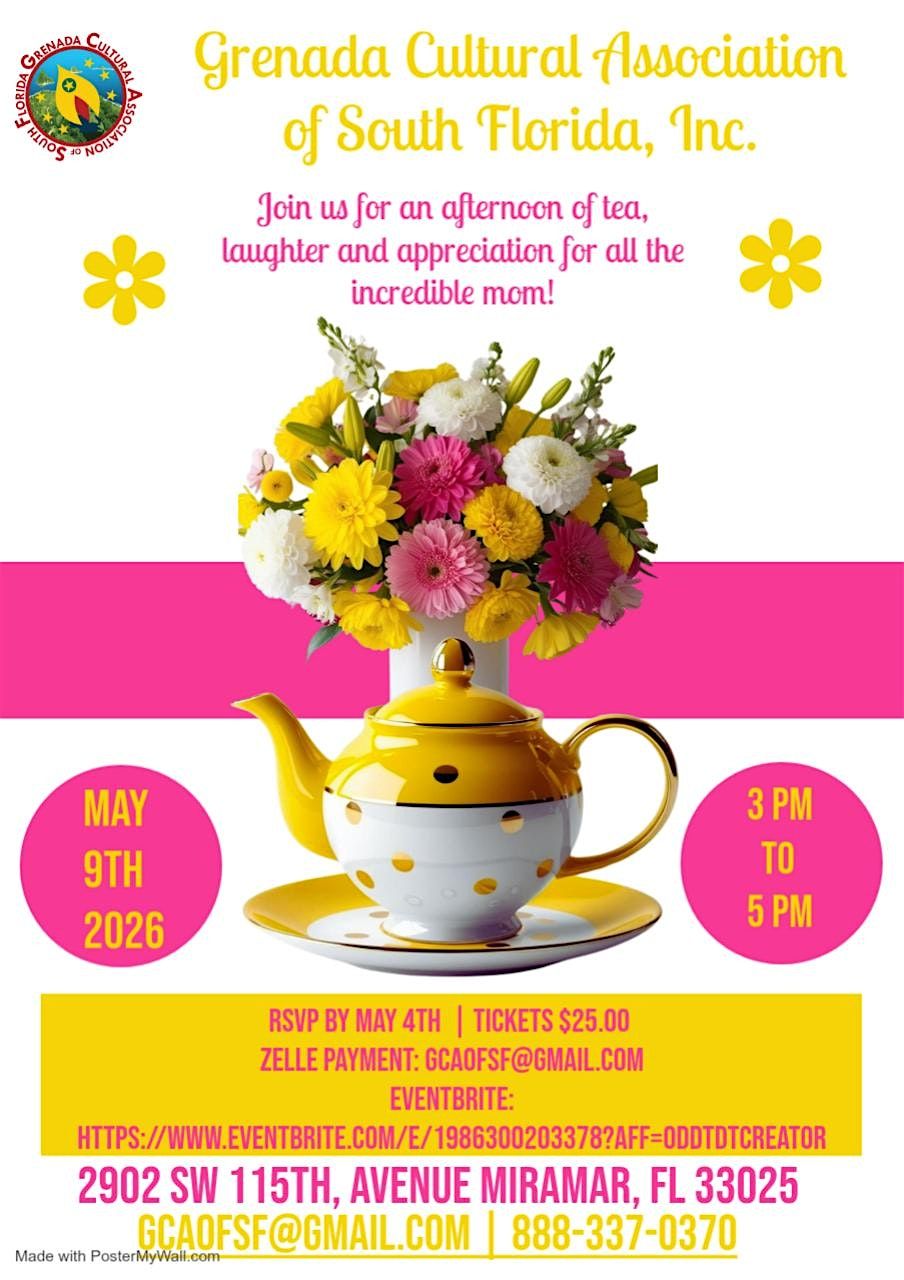 Join the Grenada Cultural Association of South Florida for a Mother’s Day Tea Party celebrating moms with tea, treats, and cherished moments